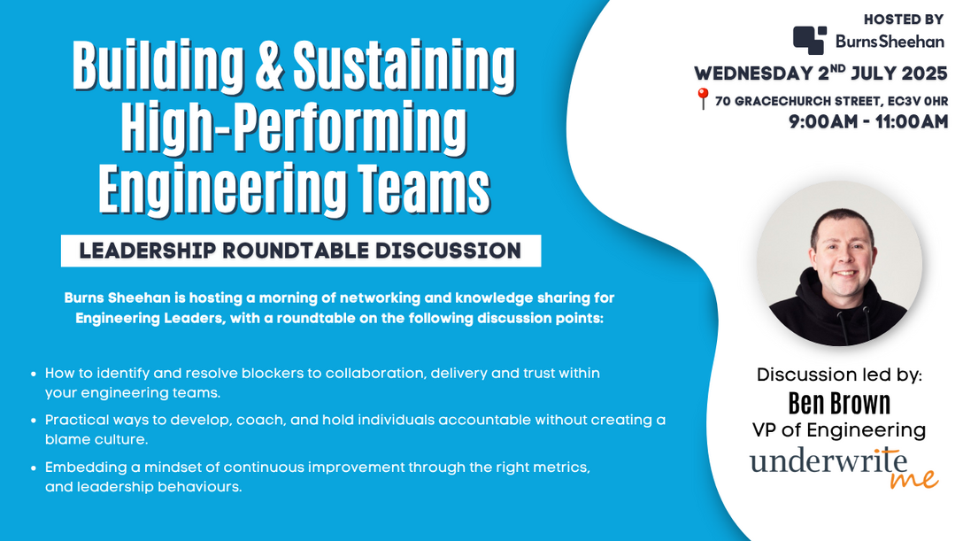 The session was moderated by Ben Brown, VP of Engineering @ UnderwriteMe and hosted by Simon Evans, Senior Director & Engineering Leadership Consultant.